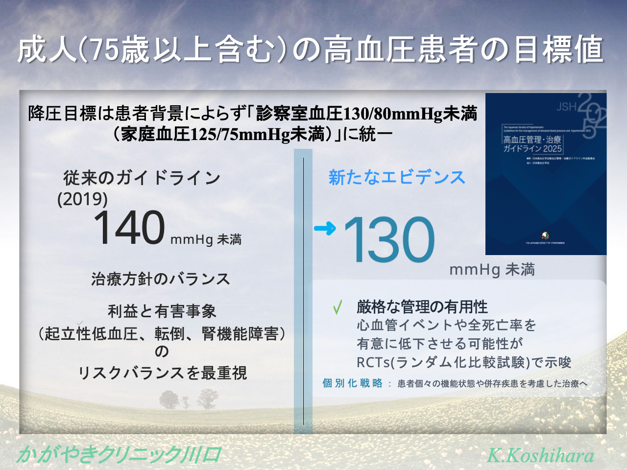 2025年に6年ぶりに改訂された高血圧治療ガイドラインでは、年齢に関係なく統一された降圧目標が設定されました。この改訂は、患者様の健康管理において重要な転換点となります。以下に、今回のガイドライン改訂のポイントと早期治療の意義について解説します。